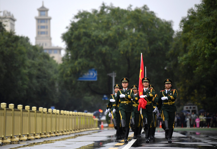 10月1日清晨,隆重的升国旗仪式在北京天安门广场举行,庆祝中华人民共和国成立76周年。